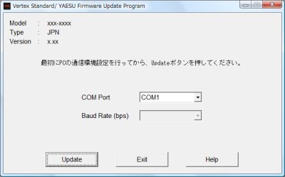 誤って、異なる機種や仕向地のファームウェアを書き込んでしまうと、無線機が正常に動作しなくなるばかりでなく、故障の原因にもなりますので、ご注意ください。