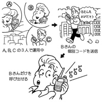仲間同士での運用時、それぞれ個別コード(3桁のDTMFを使用したコード)を設定することにより、特定の相手局だけを呼び出しすることができます。また、呼び出された局は、呼び出されたときに無線機から離れていたとしても、ディスプレイに呼出しがあったことを告げる表示が残ります。