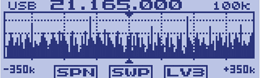 クイックメモリーバンクキー(QMB)は、運用中に気になる周波数を簡易的に素早くワンタッチでメモリーしたり呼び出したりすることができます(最大5件)。その後、通常のメモリーチャンネルに移動して登録しておけば継続的にメモリー運用が可能です。 ![]() スペクトラムスコープ画面