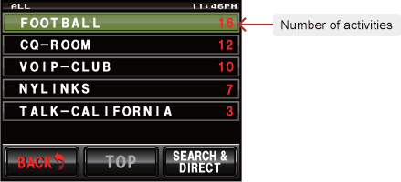 When the local node does not connect to another node, the node or room your transceiver most recently connected to will appear. Select the node or room and start a QSO immediately.