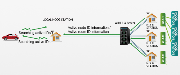 IDs of active nodes and rooms can be searched from the C4FM transceiver via the local node.