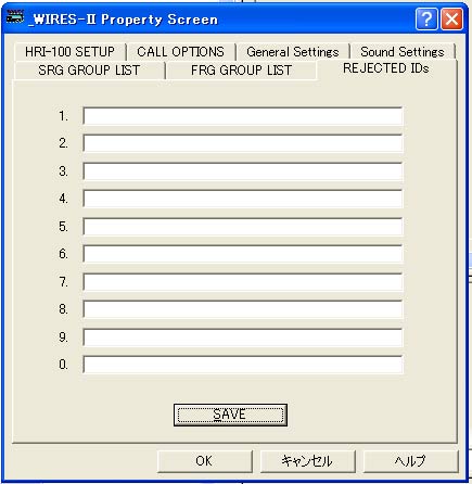 特定のWiRES-II局からの着信を受けたくないときには、REJECTED IDsのリストにIDを入力します。リストに登録したIDからは、SRG,FRG、Round QSO Room(開設している場合)の呼び出しをすべて無効にします。特定の局からの接続により妨害を受ける場合があるとき、一時的に設定することができます。