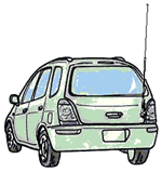 | モービルでは、狭帯域になりがちな市販のモービル用ホイップアンテナのSWRを補正し、利用範囲を広げます。 | ![]() |