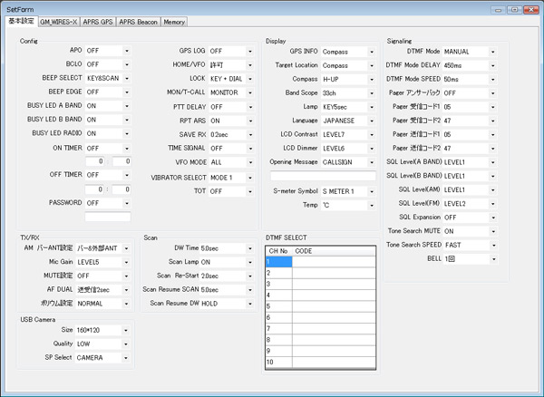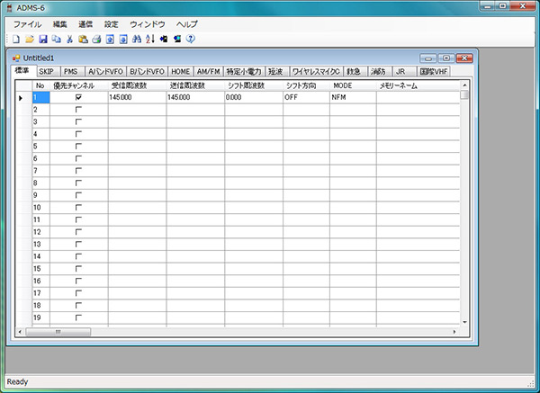 (周波数、メモリーネーム、スケルチ設定、レピーター設定、送信電力など)