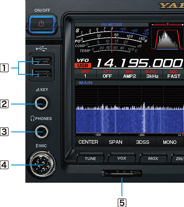 (ANT3は、受信専用としての設定が可能) - 8PEXT SPKR:外部スピーカー端子