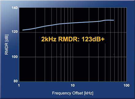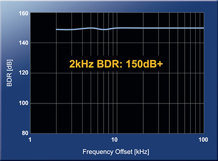 この回路構成は、一般的なPLLによってローカル信号を発生させる方式と異なり、400MHzという高い周波数から直接分周してローカル信号を創り出すことによって、理論上のPLLロックアップタイムはゼロとなりロックアップタイムに依存するC/Nの悪化が発生しないというメリットと共に、直接分周することによりC/N特性が大幅に改善することで受信部全体の低ノイズ化と超近接のブロッキングダイナミックレンジ特性を飛躍的に改善することができます。FTDX101シリーズのローカル信号におけるフェーズノイズ特性は、近接2kHzにおいて実に-150dBc/Hz以下という驚異的な値を達成。この低ノイズ・高品位のローカル信号は、数百ヘルツという超近接の多信号特性に大きく貢献します。-