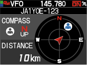 C4FMデジタルのV/Dモードで通信中の相手局の位置をコンパス画面にリアルタイムで表示します。相手との位置関係を常に確認することができるので待ち合わせや合流などに便利な機能です。・ バックトラック機能