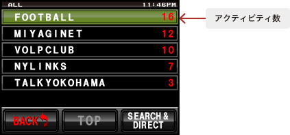 アクティビティ数が多い(接続しているノードが多い)ルームから順に表示させて選択できます。