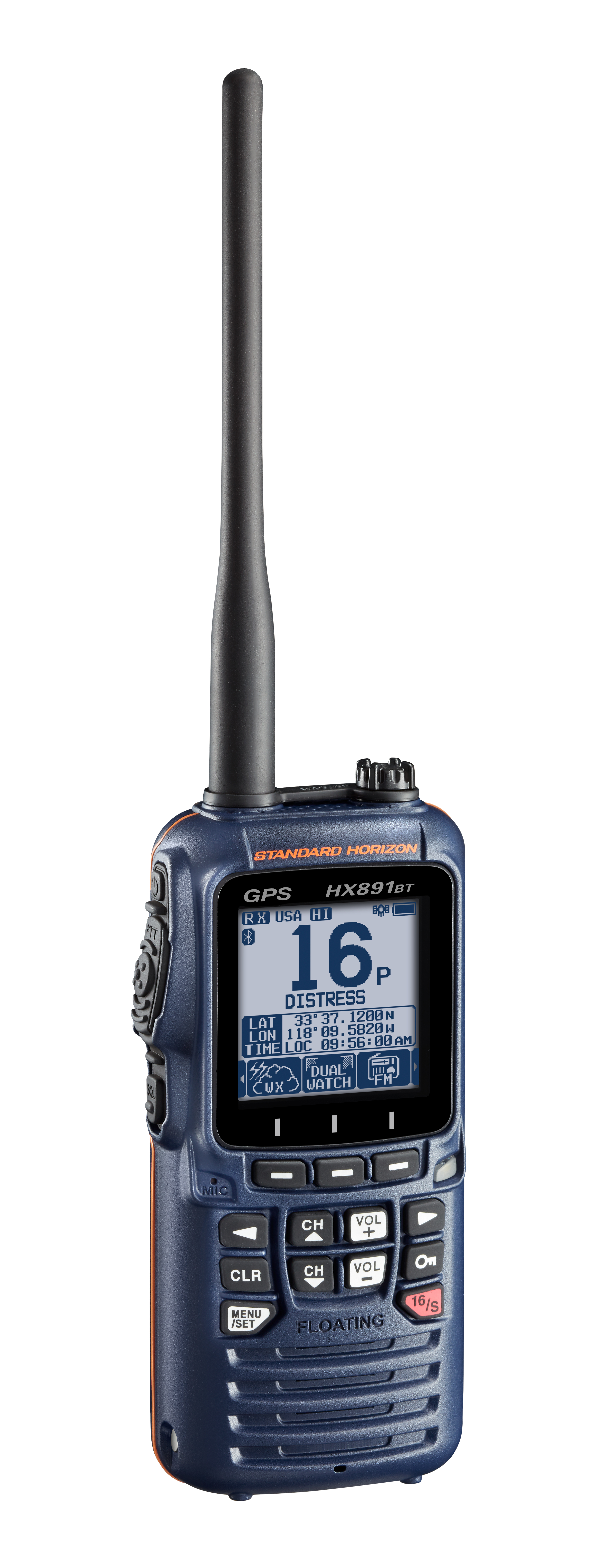 If safety is the number one concern out on the water, then look no further, the Standard Horizon HX891BT VHF/GPS/Bluetooth has it all! Built-in GPS and full DSC capabilities give the ability to share position information in the event of an emergency. The built in Bluetooth feature gives the additional advantage of handsfree VHF operation, compatible with the SSM-BT-20 Bluetooth headset and additional aftermarket headset types. The HX891BT is available in two different color options, Black or Navy Blue. Prominent features include a water activated Strobe light as well as two scrambler systems built in to ensure secure communications out on the water. Other notable features include: FM band radio, Switchable daytime or nighttime mode, waypoint and route navigation, Group monitor function utilizing DSC Group position call. Keeping the marine environment in mind the HX891BT has been designed with an ergonomic case design and has been rigorously tested to conform to the Military Standard (MIL-STD-810F). The feature packed HX891BT comes packaged with all the accessories including the rechargeable Li-Ion battery, Alkaline battery tray, 110V wall charger, 220V adapter, charging cradle, 12V charger, PC programming cable and belt clip with lanyard, and it's backed by our industry leading 3 year waterproof warranty.
