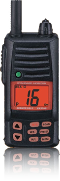 The HX270S has the capability to be programmed to scan any number of channels with other without priority to channel 16 also includes Ch16 Dual Watch and NOAA Weather alert. The PRESET key allows you to easy recall 8 of your most used channels. Additionally, an easy to see battery life indicator on the LCD warns you when the battery needs recharging.