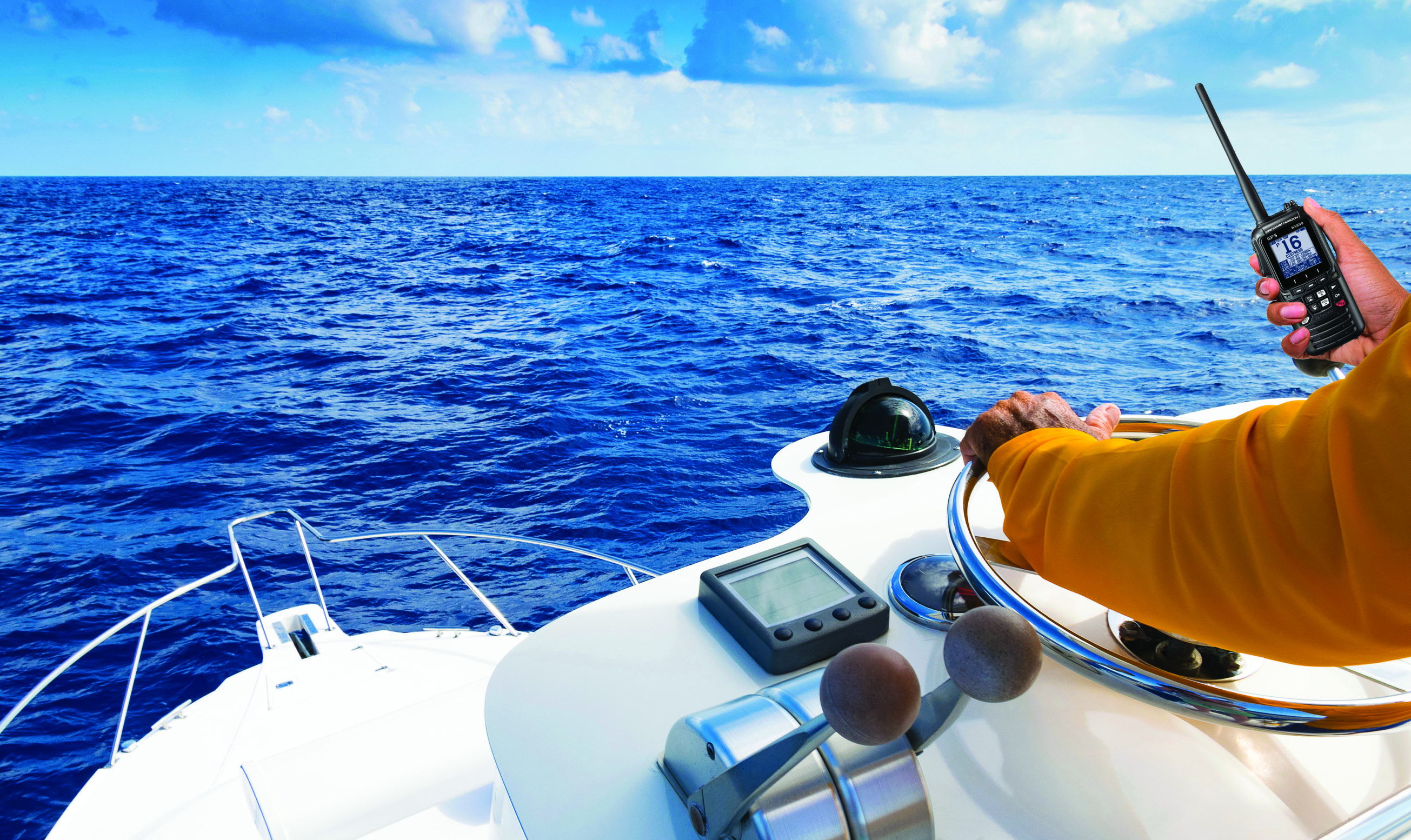 Integrated 66 Channnel WAAS GPS receiverA highly sensitive 66 channel WAAS GPS receiver allows the HX890 to lock on to a position quickly and accurately. With position information displayed clearly on the display the user will be able to share position information using DSC and navigate to waypoints using the waypoint navigation feature of the radio.